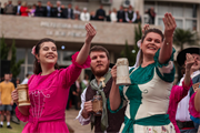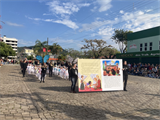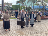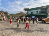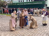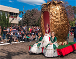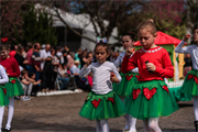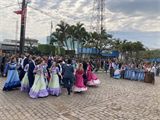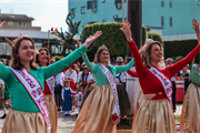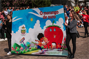 A primeira atração da Festa Nacional do Moranguinho é o desfile ‘O Morango de Ouro’. Um grande público acompanha a atividade, que é realizada na avenida Guilherme Winter, em frente à prefeitura.