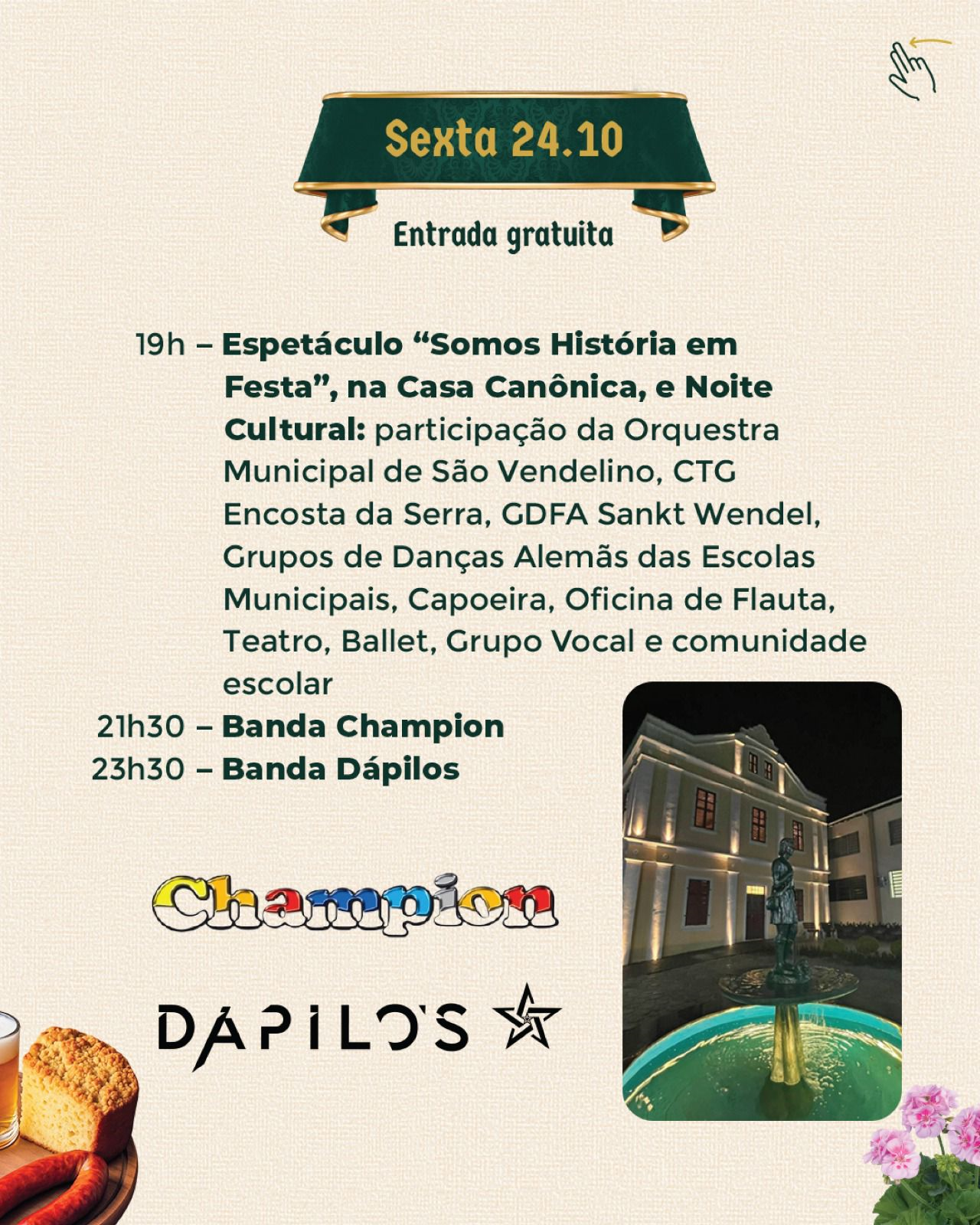 Com boa música, pratos típicos e o acolhimento característico da comunidade, São Vendelino convida todos a viver um fim de semana repleto de cultura, sabores e diversão. Porque aqui, a história também se celebra à mesa!