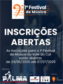 Link para inscrição e regulamento está na bio do Festival no instagram @festival_de_musica_dovaledocai