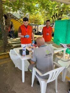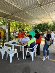 Durante o evento, foram oferecidos atendimentos de saúde e aferição de pressão arterial e glicemia. Também são realizados testes rápidos, avaliação odontológica, teste toxicológico salivar e disponibilizadas orientações sobre hábitos saudáveis. Materiais informativos estão sendo distribuídos, abordando temas como câncer de próstata, diabetes, saúde mental e qualidade de vida.