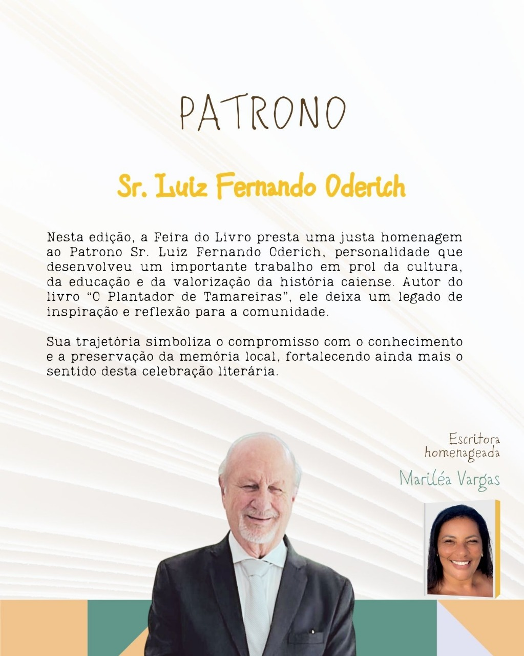 A Feira do Livro 2025 de São Sebastião do Caí segue até a manhã de sábado, dia 11 de outubro. O evento ocorre no Estacionamento da Igreja Matriz e na praça Cônego Edvino Puhl, no centro da cidade. Além das atrações culturais, o público conta com brinquedos para a diversão da criançada. O patrono desta edição é o escritor e empresário Luiz Fernando Oderich e a escritora homenageada é Mariléa Vargas.