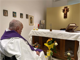 Foi divulgada neste domingo, dia 16, a primeira foto do Papa Francisco desde que ele iniciou tratamento médico há mais de um mês. Na foto, o Papa aparece de costas celebrando a Santa Missa na capela do apartamento localizado no hospital em que está internado em Roma, na Itália.