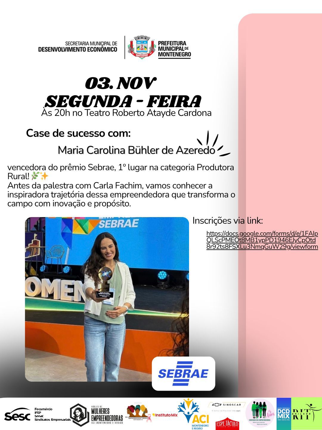 Palestra gratuita com Carla Fachim abre o Mês do Empreendedorismo Feminino em Montenegro