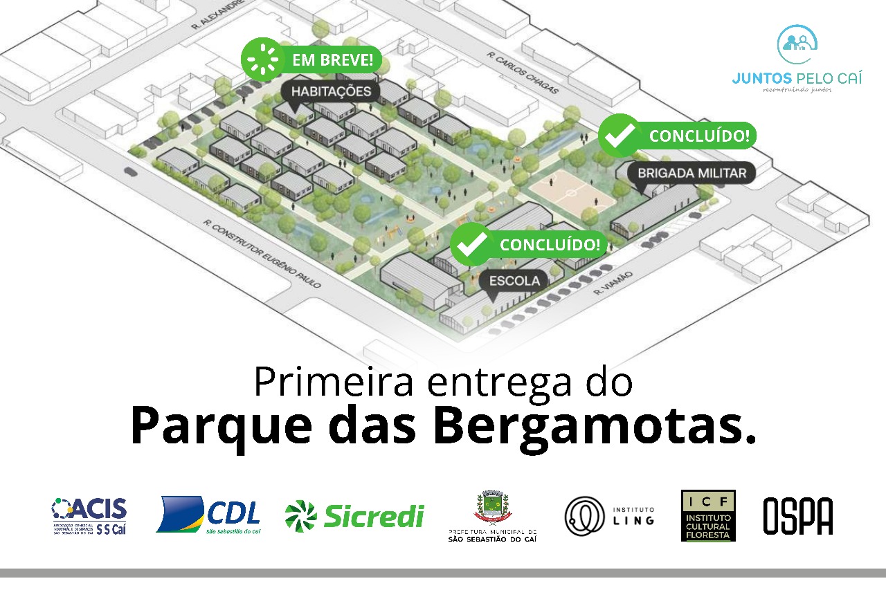 Na tarde desta sexta-feira, dia 19, às 15h, acontece a entrega oficial dos prédios da escola municipal e da Brigada Militar no Parque das Bergamotas, em São Sebastião do Caí. A ação faz parte da primeira etapa do projeto Juntos Pelo Caí, no Loteamento Boa Vista. Numa segunda etapa serão entregues 44 residências para famílias desalojadas pela enchente de maio do ano passado.