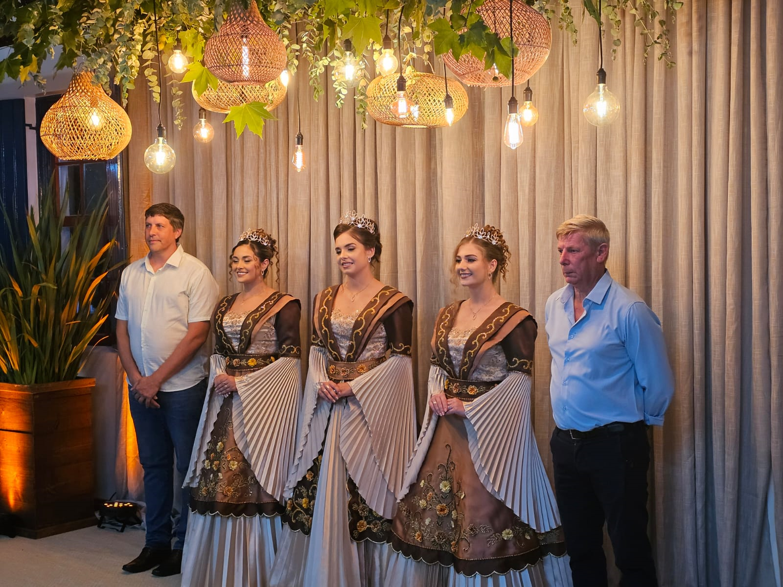 Ao som do gaiteiro João Ernesto Paz Bessi, foram abertas as portas para apresentar os trajes das soberanas. Na sequência o prefeito José Henrique Dapper, o “Pigue”, destacou que as soberanas representam a beleza, cultura e história do município. Já o vice-prefeito e presidente da comissão organizadora Sérgio Roberto Sacksen, o “Beto”, frisou que a festa é o reflexo de um povo trabalhador, orgulhoso de sua terra e origem.
