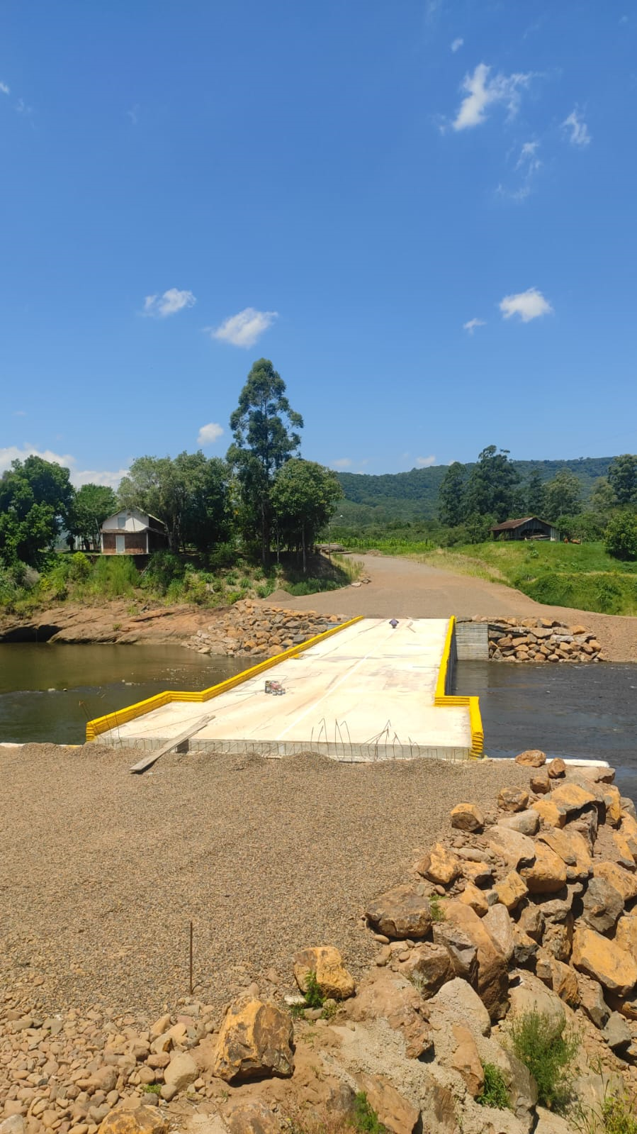 A nova ponte baixa terá 54 metros de extensão e 10 metros de largura. A estrutura foi projetada para permitir, inclusive, o tráfego de veículos pesados. O andamento das obras pode ser acompanhado pela comunidade em qualquer hora, bastando acessar a transmissão no Youtube da internet. A passagem sobre o rio Caí foi interrompida quando a ponte da VRS-843 foi levada pela correnteza da grande enchente de 2024. Chegou a ser construída uma ponte baixa, com estrutura sobre contêineres, mas ela também foi destruída pela força da água no início do ano passado. Já a nova ponte do Governo não tem previsão para ficar pronta. A campanha é encabeçada pela Associação Comercial, Industrial e de Serviços de Feliz (ACISFE) e lideranças, pois a falta de ligação causa grandes prejuízos ao comércio, empresas e aos moradores.